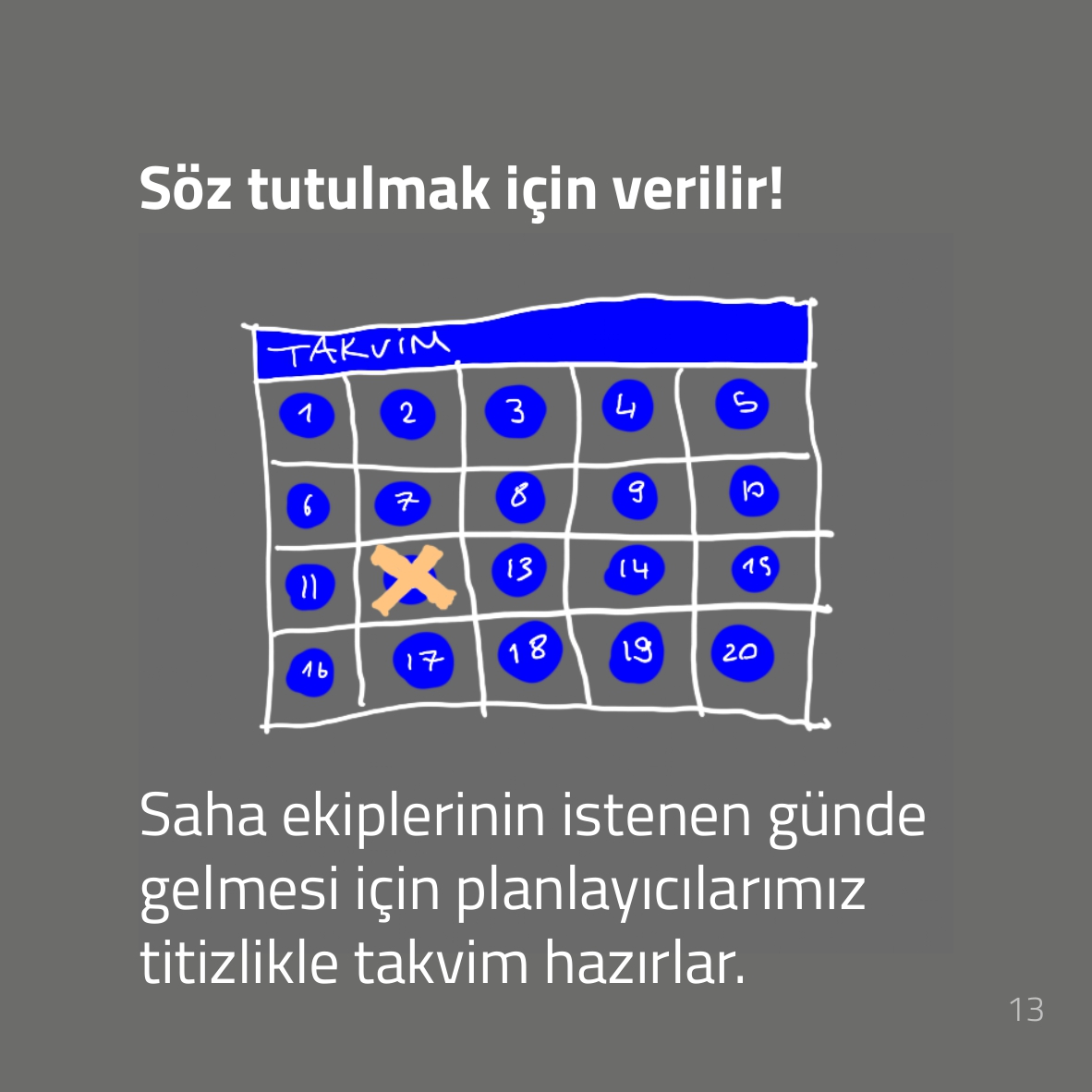 Ekibiniz yarın geliyorum dedi, sabah dokuzda geldi, böyle sözüne sadık bir ekibe yakın tarihte hiç rast gelmedim.