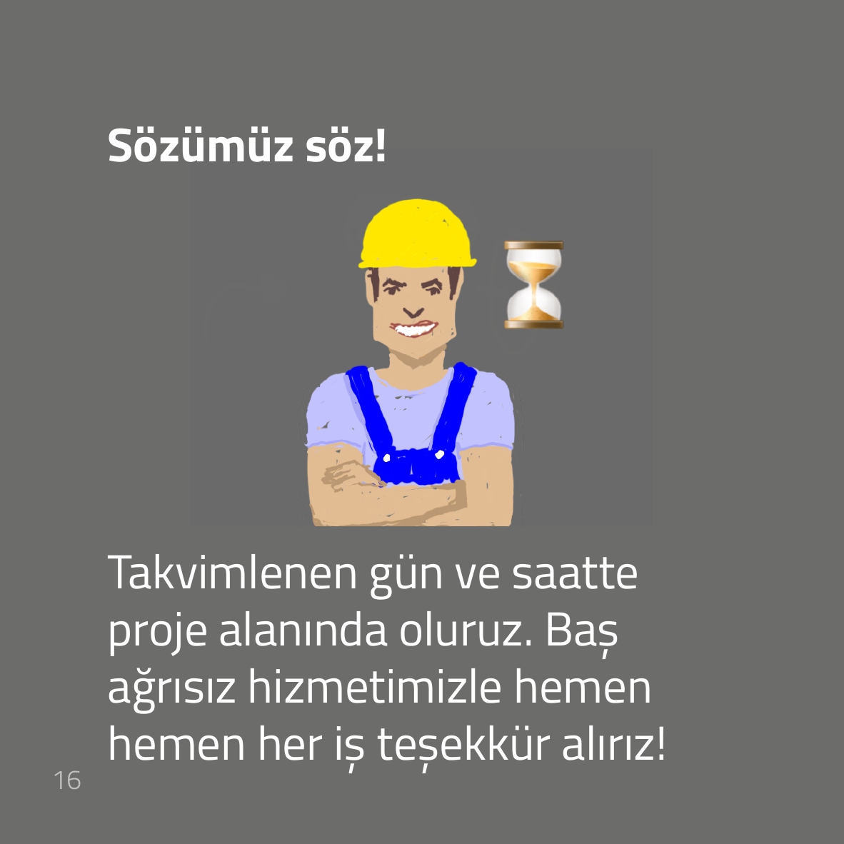 Güvenli, güleryüzlü, zamanında iş teslimi ve sağlam işçilik.